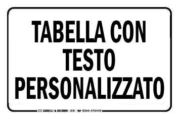 Oltre alle centinaia di tabelle standard produciamo cartelli con testo personalizzato, anche per piccole quantità con prezzi sempre concorrenziali